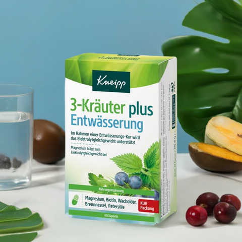 Kneipp 3-Kräuter plus Entwässerung ist eine gezielte Nahrungsergänzung für Menschen, die ihren Körper auf natürliche Weise bei einer Entwässerungskur unterstützen möchten. Die Kombination aus Magnesium, Biotin, Wacholderbeeren, Brennnessel und Petersilie ist sorgfältig abgestimmt, um den Körper bei der Regulierung des Wasserhaushalts und der Aufrechterhaltung des Elektrolytgleichgewichts zu begleiten.