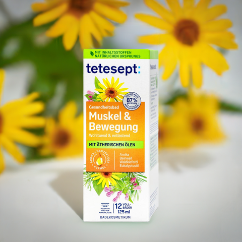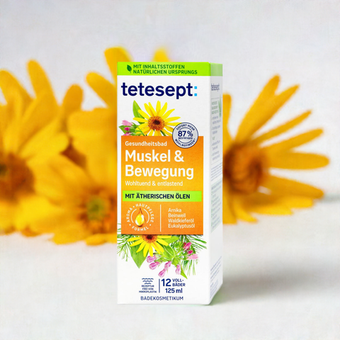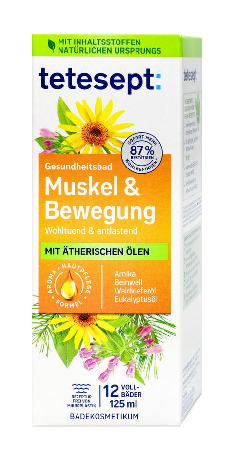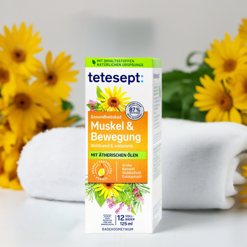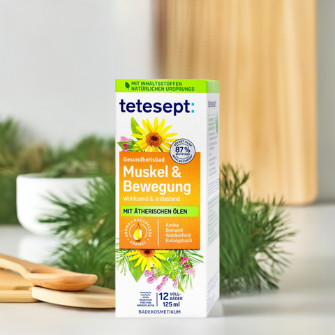 Verbessern Sie Ihre Muskel- und Gelenkgesundheit mit Tetesept Muskel & Bewegung Bad. Eine einzigartige Kombination aus ätherischen Ölen und Wirkstoffen fördert Entspannung und Regeneration nach körperlicher Aktivität. Spüren Sie die lindernde Wirkung bei regelmäßiger Anwendung.