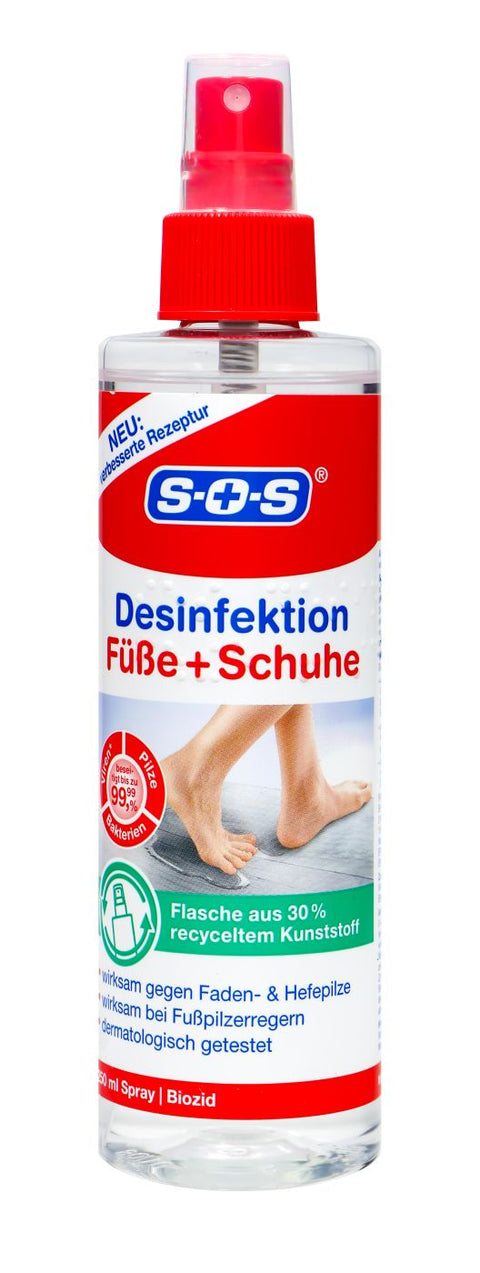 SOS Fuß-Desinfektionsspray gegen Pilzerreger Füße & Schuhe 250 Milliliter